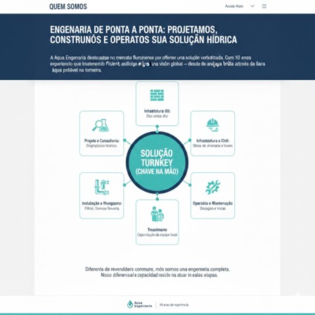 A Aqua Engenharia destaca-se no mercado fluminense por oferecer uma solução verticalizada. Com 10 anos de experiência, entendemos que o tratamento de água eficiente exige uma visão global — desde a análise da água bruta até a entrega da água potável na torneira.